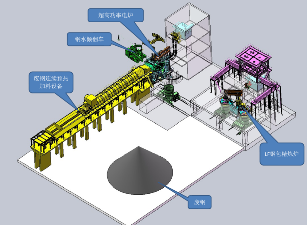 北方重工集團(tuán)有限公司在消化吸收國內(nèi)外技術(shù)基礎(chǔ)上,開發(fā)的60t至150t超高功率電弧爐、LF鋼包精煉爐及廢鋼水平連續(xù)預(yù)熱加料設(shè)備具有連續(xù)加料、連續(xù)預(yù)熱和連續(xù)冶煉的工藝特點,實現(xiàn)了煉鋼生產(chǎn)的高效、低耗和環(huán)保,主要應(yīng)用于鋼鐵冶金、機械鑄造、新材料等領(lǐng)域。